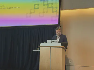 Dean Stan Gerson underscored the critical importance of biostatistics in driving progress in medical research and had the distinguished honor of introducing the keynote speaker.The symposium concluded with a keynote lecture from Dr. Jeff Leek, Vice President and Chief Data Officer at Fred Hutchinson Cancer Center, and recipient of the prestigious COPSS Presidents’ Award. His talk, filled with insight and humor, emphasized the power of data science to bridge research and public impact. To honor his contribution, the organizing committee presented Dr. Leek with a commemorative plaque.